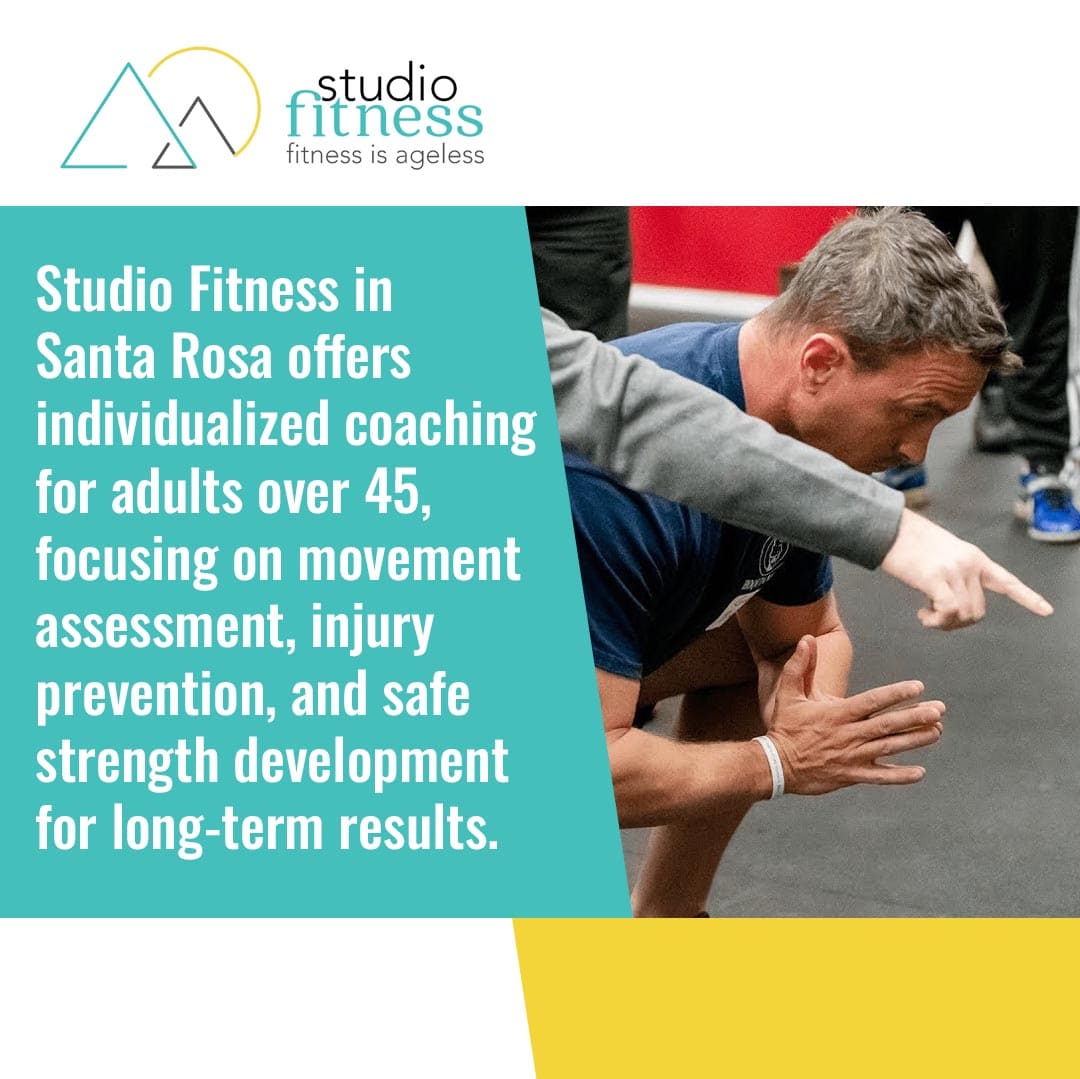 Studio Fitness specializes in serving adults throughout Sonoma County who value intelligent Santa Rosa personal training focused on maintaining mobility and functional strength through personalized coaching. Professional trainers bring extensive experience adapting training for people managing joint limitations, past injuries, and health conditions while building meaningful strength.